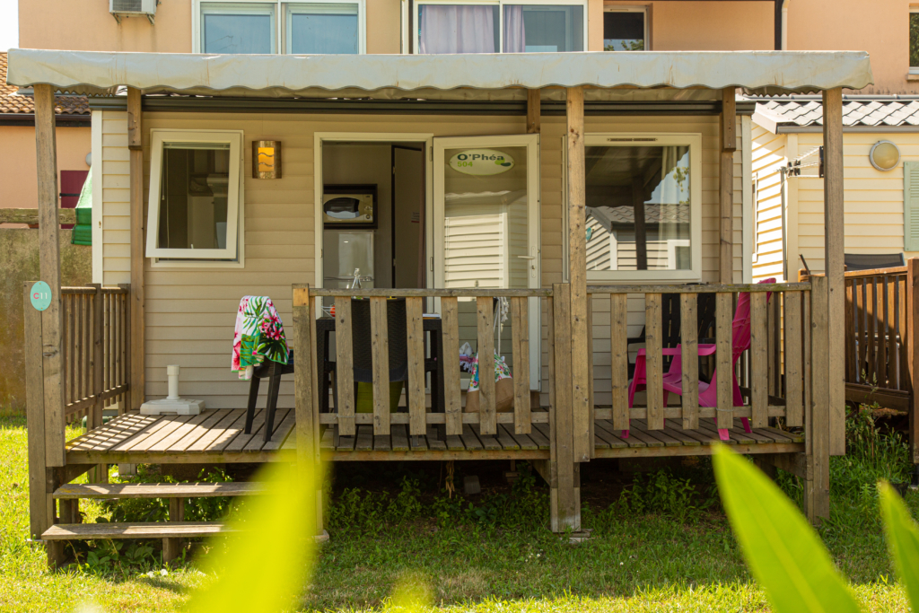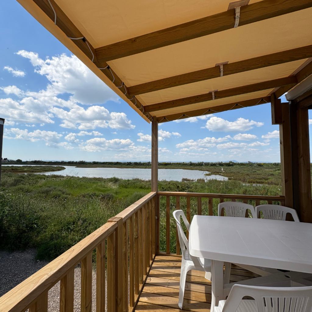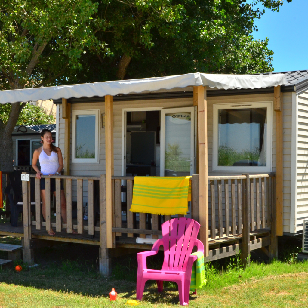 Profitez du mobil-home Loggia dernière génération, idéal pour 4 personnes, qui allie confort moderne, espace optimisé et détente sous le soleil méditerranéen au Camping Montpellier Plage.
