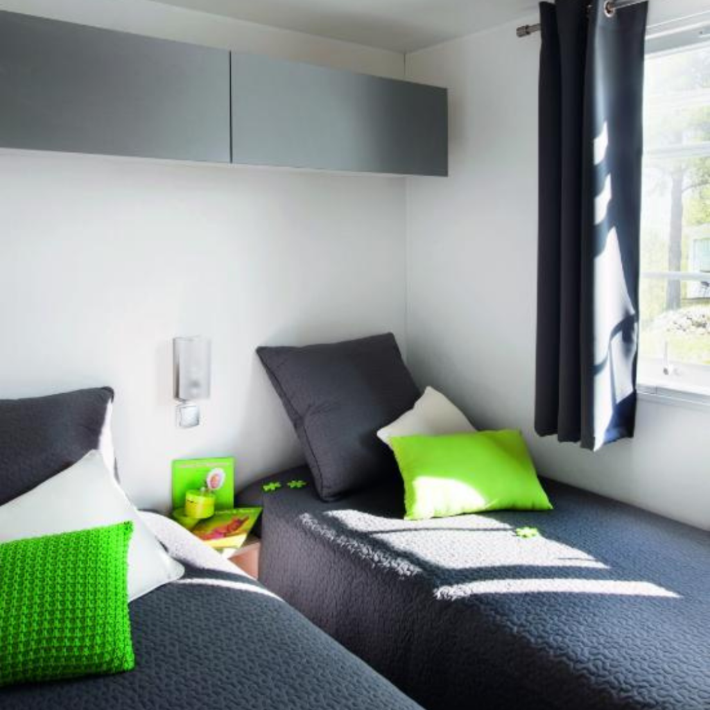 Parfaits pour des vacances en famille ou entre amis, les 2 chambres allient espace, confort et praticité pour un séjour agréable au Camping Montpellier Plage.