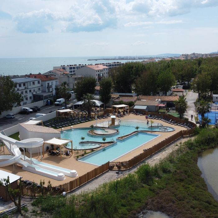 Plongez dans notre piscine et toboggans pour petits et grands. Jeux d’eau, transats et détente à deux pas de la plage de Palavas‑les‑Flots. Vacances fun garanties !