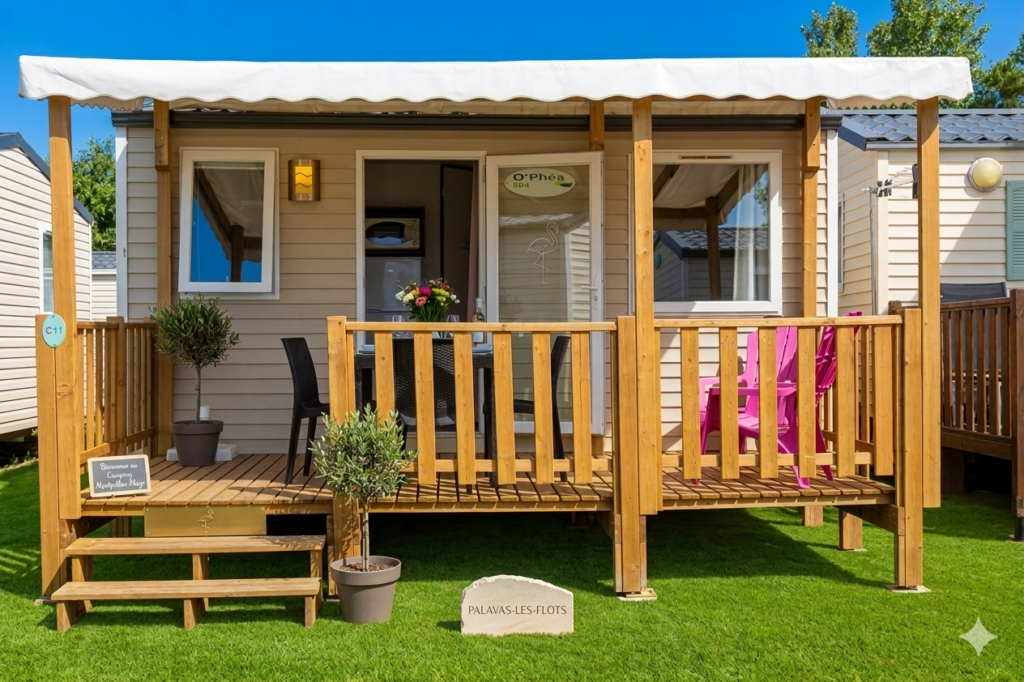 Profitez du mobil-home Loggia dernière génération, idéal pour 4 personnes, qui allie confort moderne, espace optimisé et détente sous le soleil méditerranéen au Camping Montpellier Plage.